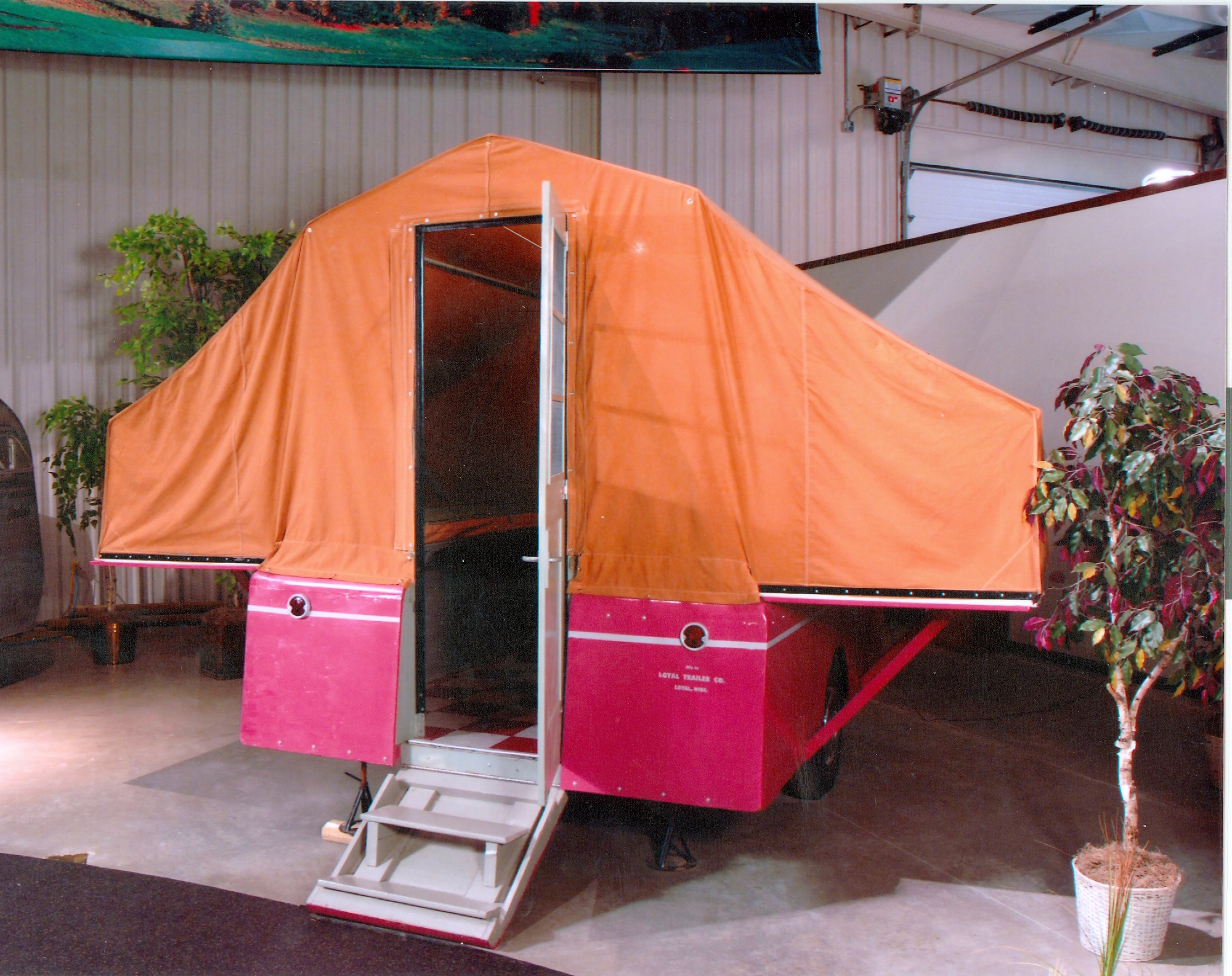 Examples of the Sportsman trailers by Serro that were designed to be stored in a conventional residential garage.